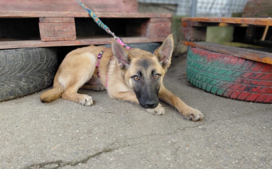 In Yumikos Adern fließt höchstwahrscheinlich das Blut eines Malinois-Mixes, was sich in ihrer hohen Aufmerksamkeit und ihrem Arbeitswillen widerspiegelt. Sie ist kein Hund für Couchpotatoes, sondern eine Partnerin für aktive Menschen, die Lust auf gemeinsame Abenteuer haben. Da sie extrem futterorientiert ist, bringt sie die beste Voraussetzung für das Training mit – sie lernt schnell und möchte gefallen. An Geschirr und Leine zeigt sie sich bereits sehr kooperativ und meistert diese ersten Schritte der Erziehung mit Bravour. Auch mit anderen Hunden ist sie bestens verträglich und genießt die soziale Interaktion sichtlich. Ob sie auch Katzen duldet, wissen wir nicht.