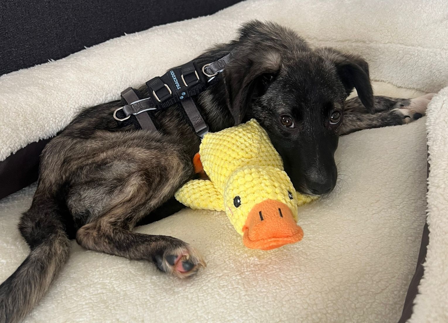 Zarina hat aber nicht nur einen super süßen Charakter, sondern ist zudem auch richtig hübsch. Ihre schwarz-braune Fellzeichnung mit weißen Abzeichen an der Brust und an den Pfoten ist nicht zu übersehen und mit ihren dunklen Knopfaugen blickt sie einem direkt ins Herz.