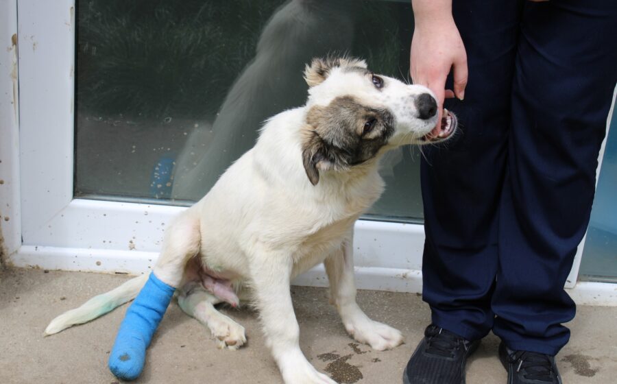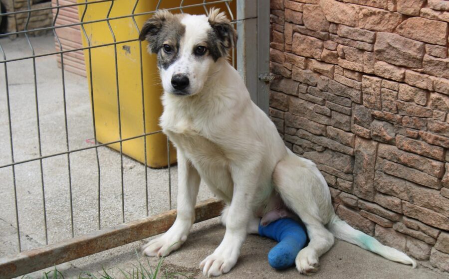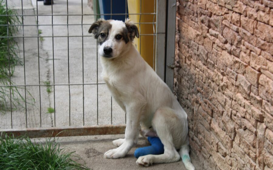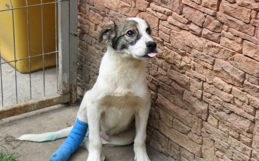 Zolofelo wurde vermutlich von einem Auto angefahren und schwer am rechten Hinterbein verletzt. Eine Person, die es wohl gut mit ihm meinte, tat leider genau das Falsche: Sie schiente das Bein notdürftig mit einem Stück Holz, was Zolofelos Zustand dramatisch verschlimmerte. Die Wunde entzündete sich, Zolofelo, der noch am Anfang seines Lebens steht, litt große Qualen – es drohte sogar die Amputation.