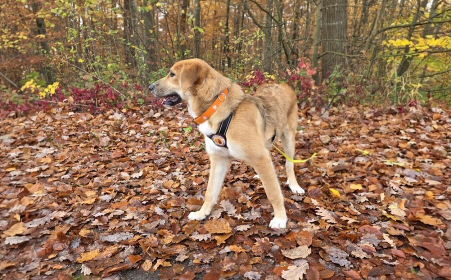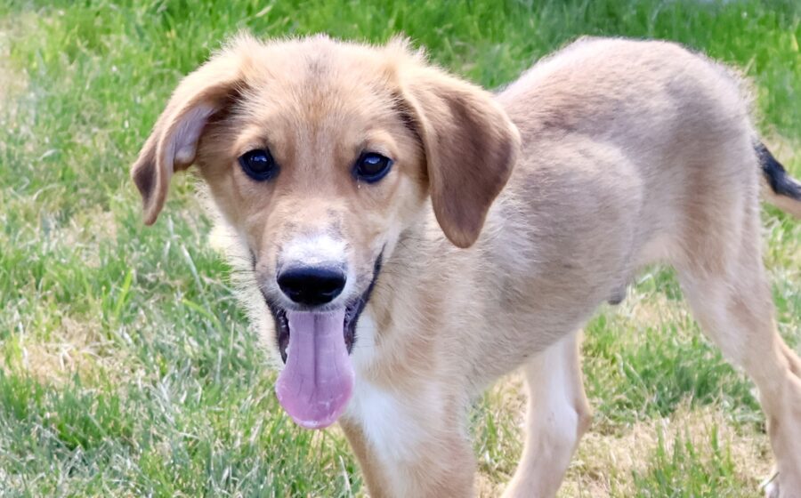 Sein weiches Fell in warmem Braunton, die weißen Söckchen und die treu blickenden Augen machen ihn zu einem echten Herzensbrecher. Sein Äußeres lässt vermuten, dass in ihm – wie auch bei seiner Mama – ein Retriever- oder Collie-Mix steckt. Collies überzeugen durch ihre Intelligenz und ihren ausgeprägten Arbeitswillen, ebenso über den sogenannten „will to please“ – also der Wille, Bedürfnisse zu erfüllen. Collies sind eifrig, ausdauernd und geben alles, um ihre Besitzer glücklich zu machen. Beim Treiben der Herde oder Leiten der Tiere beweisen sie ein großes Hütetalent, während sie stets aufmerksam und freundlich sind. Sie benötigen eine kompetente und verlässliche Führung und sollten ihrem Trieb durch Aktivitäten wie Treib- und Suchspiele, Agility oder ähnliches nachkommen dürfen, um keine Unterforderung und damit verbundene Probleme hervorzurufen.