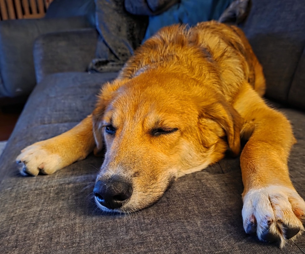 Noch wirkt Zuma zierlich, aber seine Pfoten und Proportionen deuten darauf hin, dass er einmal eine Schulterhöhe von etwa 55 – 60 cm erreichen könnte. Sein Gewicht wird vermutlich bei 18 – 25 kg liegen – eine wunderbare Größe für lange Spaziergänge, gemeinsame Abenteuer und viele Kuschelstunden.